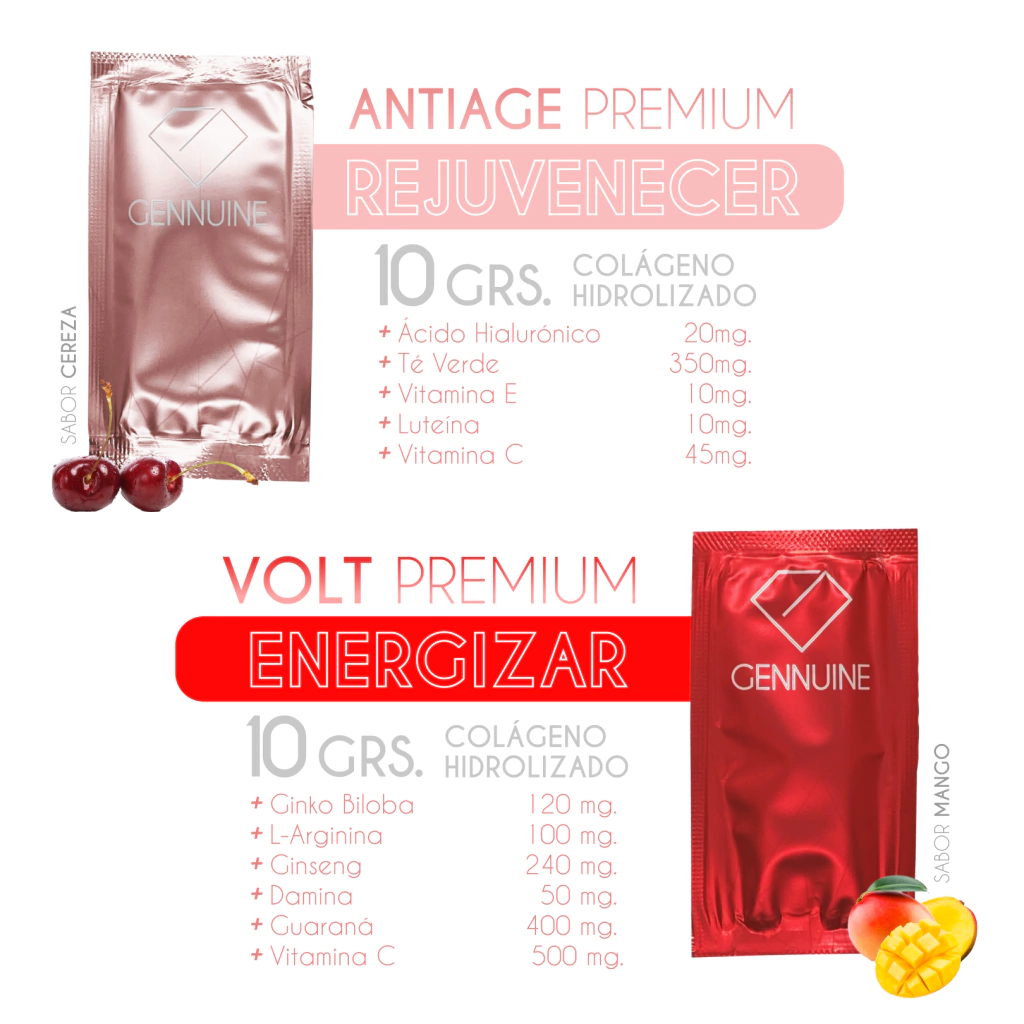 Fórmula: Colágeno hidrolizado 10 gramos diarios + 6 activos: Ginseng 240mg, L-Arginina 100mg, Gingko Biloba 120mg, Damiana 50mg, Guaraná 400mg y Vitamina C 500mg.