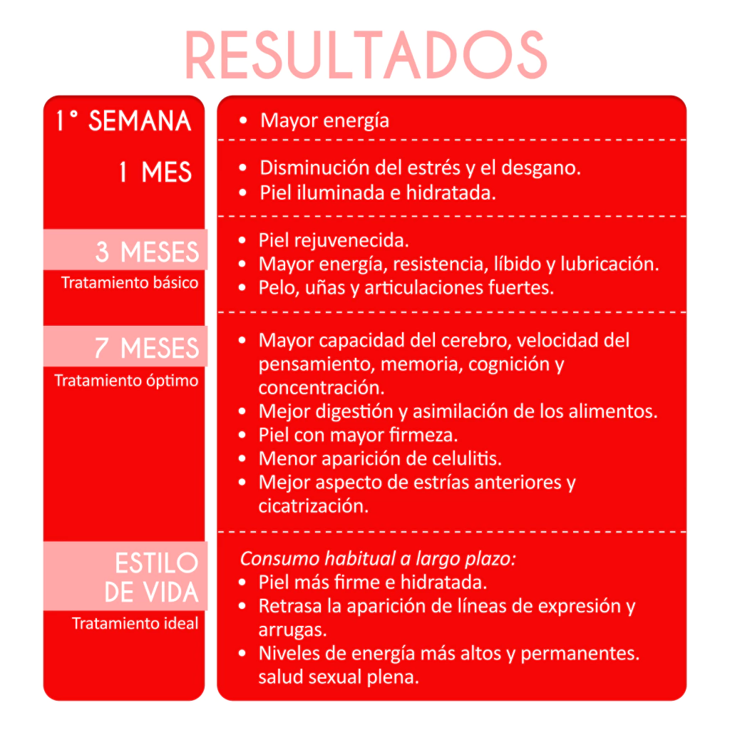 A medida que pase el tiempo, reforzará tu sistema inmune generando anticuerpos y ayudando al crecimiento, desarrollo y renovación de las células. Cuanta más continuidad le des, obtendrás resultados más sólidos.