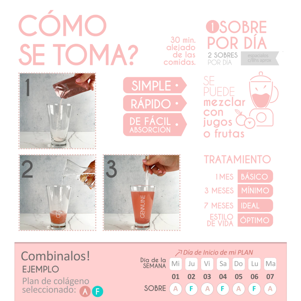 Fórmula: Colágeno hidrolizado 10 gramos diarios + 6 activos: Ginseng 240mg, L-Arginina 100mg, Gingko Biloba 120mg, Damiana 50mg, Guaraná 400mg y Vitamina C 500mg.